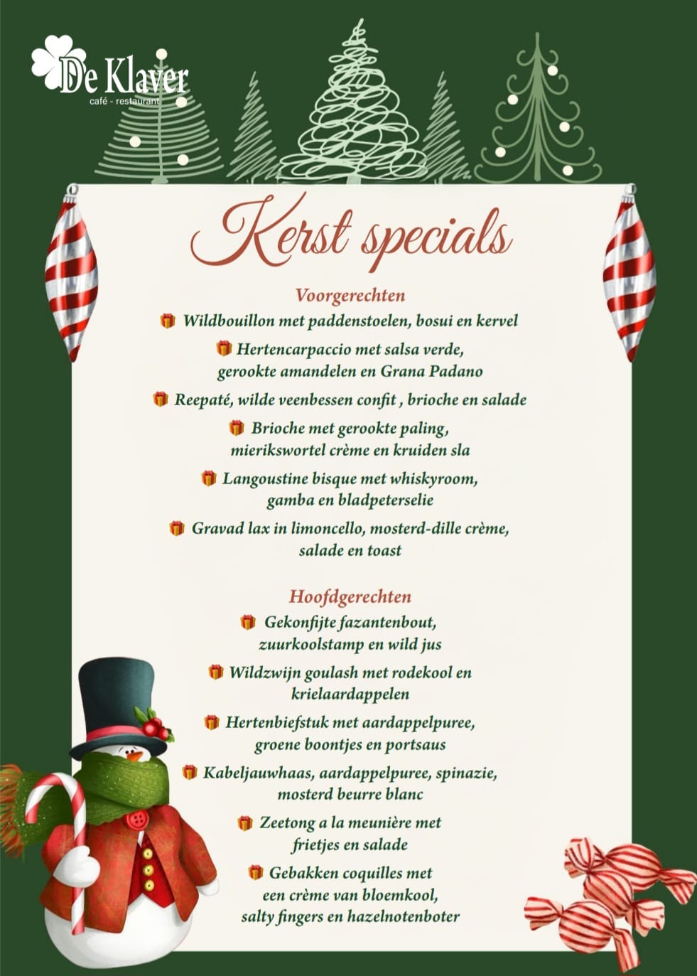 Bij De Klaver draait alles om smaak, sfeer en samenzijn. Het café-restaurant wordt gerund door Denise en Ralf, twee gepassioneerde horecaliefhebbers met jarenlange ervaring. Met hun liefde voor lekker eten en een gezonde dosis gezelligheid zorgen zij ervoor dat elk bezoek aan De Klaver voelt als thuiskomen.